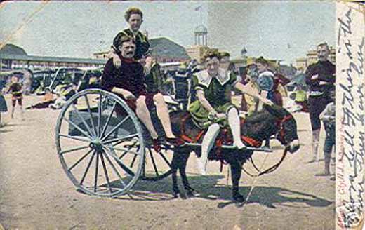 A donkey cart on the beach in turn of the (20th) century Atlantic City
