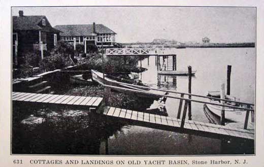 Cottages and Landings on the Old Yacht Basin at Stone Harbor, NJ around 1915