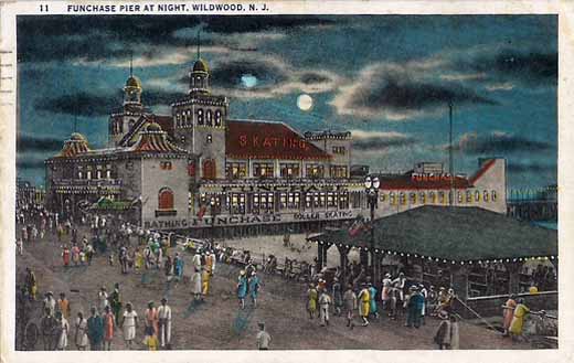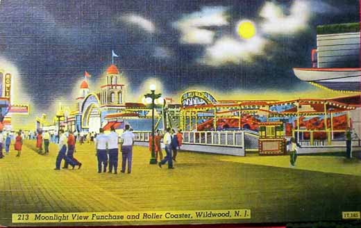 Wildwood, NJ circa 1949 - An almost radioactive nightime view of Funchase Park and its rollercoaster