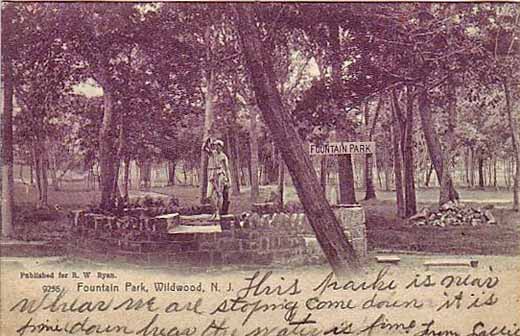 A postcard of Fountain Park in Wildwood, NJ around 1906