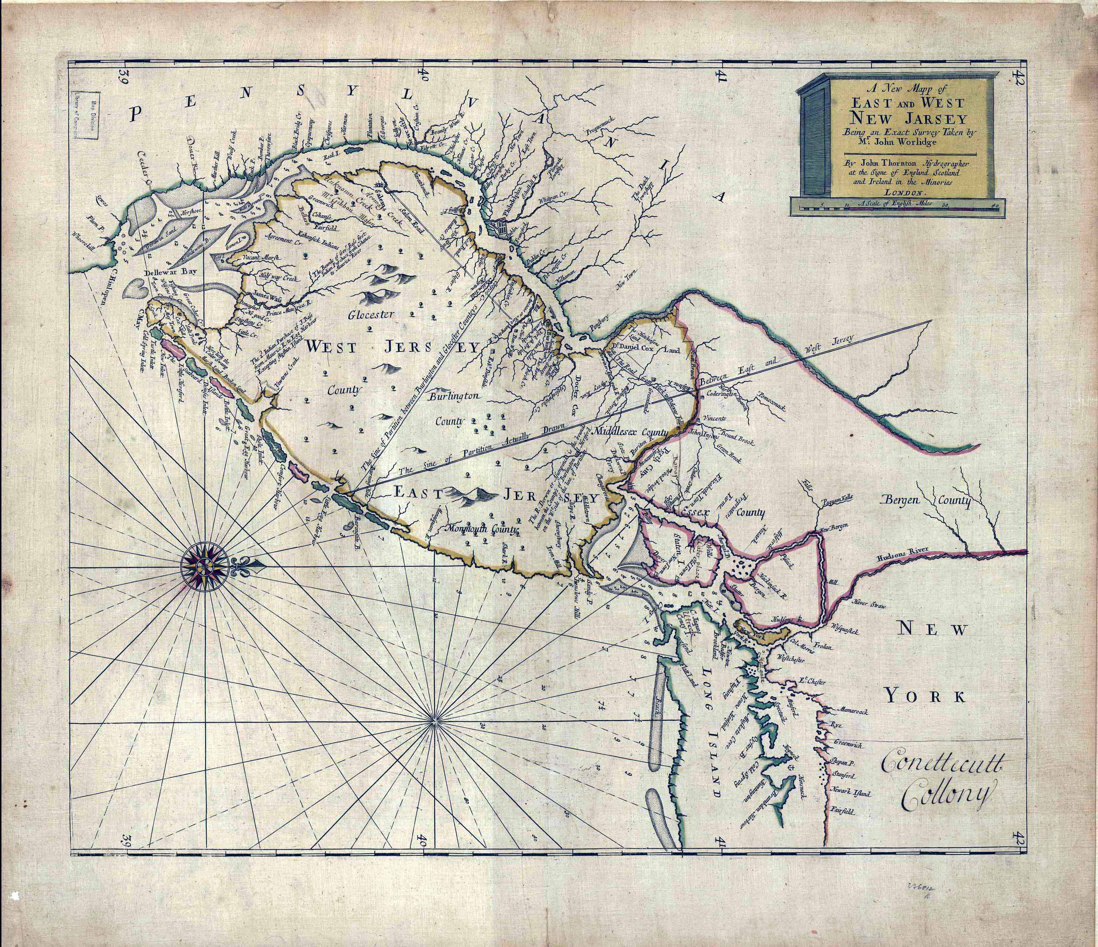 Maps - John Worlidge’s Map of East and West Jersey, c. 1696 (large - original alignment)